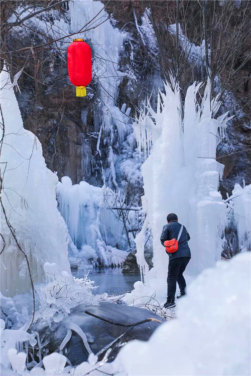 銀河峽冰掛,千姿百態(tài)、美不勝收,如瀑布高懸、飛珠吐玉,晶瑩剔透,極為別致,可入畫,亦可入詩。