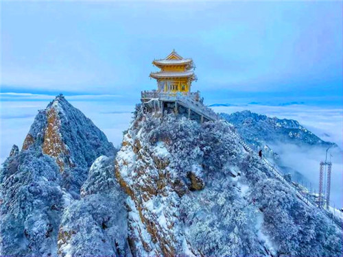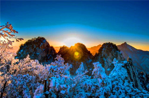 千里江山雪,十里畫屏,游其中,忘卻世俗繁瑣。日出金頂時,煙波浩瀚,目極處,心神跳出界外。