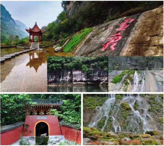 靈泉又名五福泉,其寓意為“五福齊全”,位于青天河觀音峽游覽區(qū)內(nèi)。據(jù)說,唐高宗永徽元年(公元650年)春,黃河流域發(fā)生瘟疫,孫思邈為普救眾生,每天上山采藥。一日,孫思邈感到口渴難耐,隨后來到了這五口泉邊。孫思邈飲過泉水,頓覺神清氣爽,煩熱皆除。孫思邈深感其妙,遂盛了一些水下山,和中草藥一起泡制,制成了屠蘇酒,使黃河兩岸的瘟疫得到了有效控制。這五口泉被當(dāng)?shù)厝艘喾Q為"五福泉",蘊含著人們對"福祿禎祥壽"幸福生活的向往和期盼。