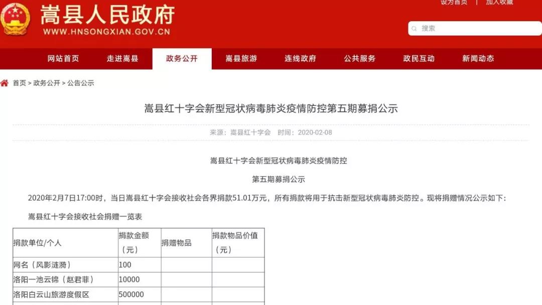 為助力嵩縣縣委、縣政府帶領(lǐng)全縣人民早日打贏疫情防控阻擊戰(zhàn),日前,洛陽(yáng)白云山旅游度假區(qū)向嵩縣紅十字會(huì)捐贈(zèng)善款50萬(wàn)元。