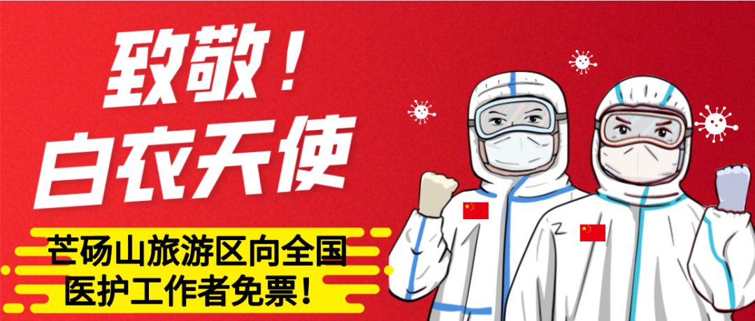 為了表達(dá)對(duì)白衣天使的崇高敬意,2020年芒碭山旅游區(qū)將為全國(guó)的“白衣戰(zhàn)士”提供VIP專享通道:自疫情結(jié)束正式開園起至2020年12月31日止,全國(guó)(含港澳臺(tái)地區(qū))所有醫(yī)務(wù)工作者,憑有效證件(醫(yī)師證、護(hù)士證或與醫(yī)務(wù)工作相關(guān)的其他資格證件)不限次、免費(fèi)進(jìn)入景區(qū)!