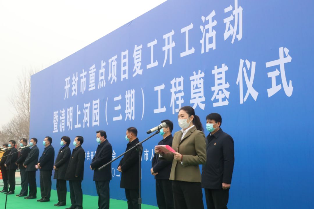 開封市委常委、常務(wù)副市長付磊主持開工活動,高建軍市長通報了全市重點項目復(fù)工開工情況,在講話中,強調(diào)了通過清明上河園集中開工,進一步提振信心,鼓舞士氣,推進重點項目建設(shè),為確保完成全年各項目標(biāo)任務(wù)打下堅實基礎(chǔ)!堅持一手抓疫情防護,一手抓經(jīng)濟社會發(fā)展,并提出3點要求:壓實工作責(zé)任,切實抓實抓好疫情防控工作,做好重點項目規(guī)范、有序、安全復(fù)工開工;繼續(xù)強化服務(wù)保障,推動重點項目建設(shè);堅持建設(shè)與謀劃并進,形成重點項目積極推進的機制。