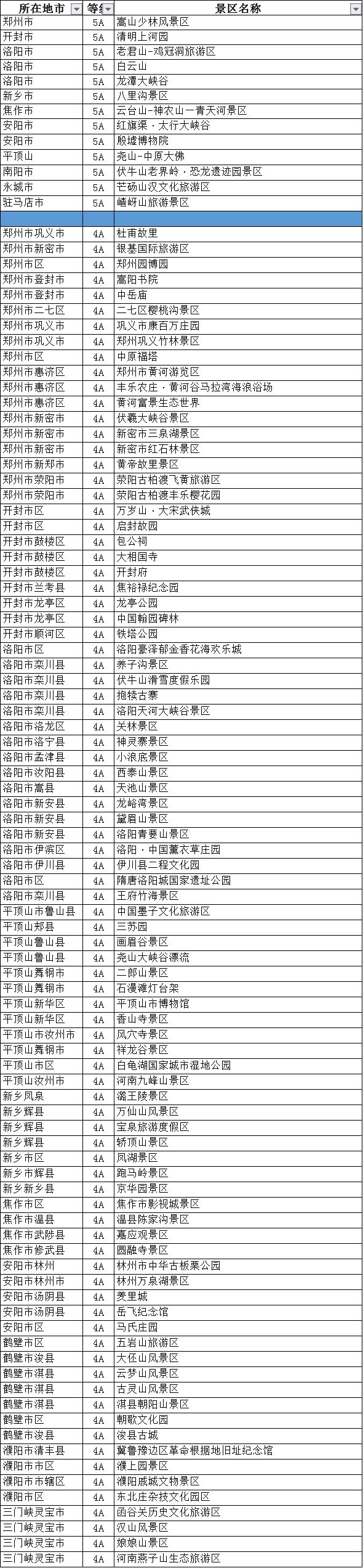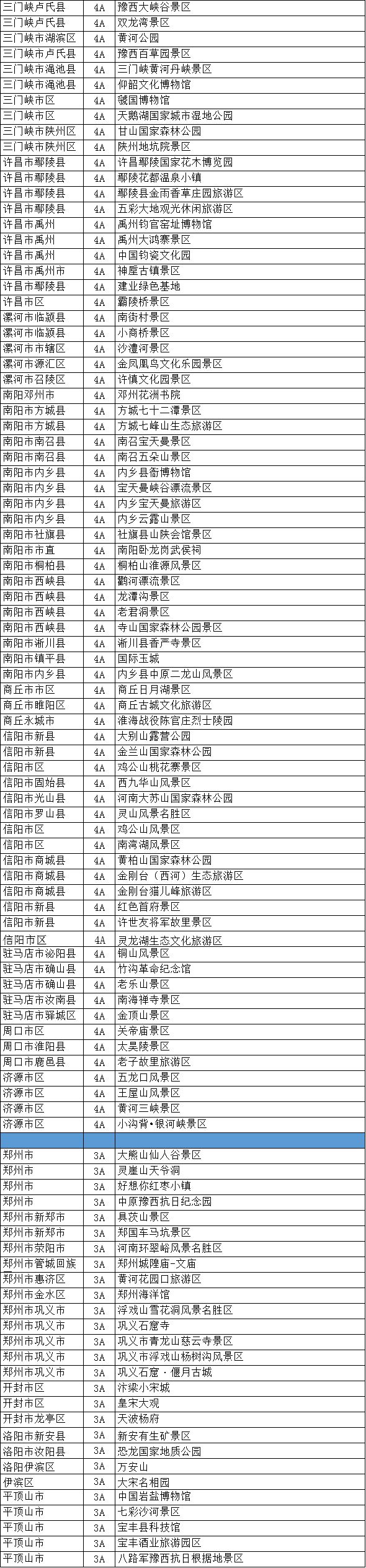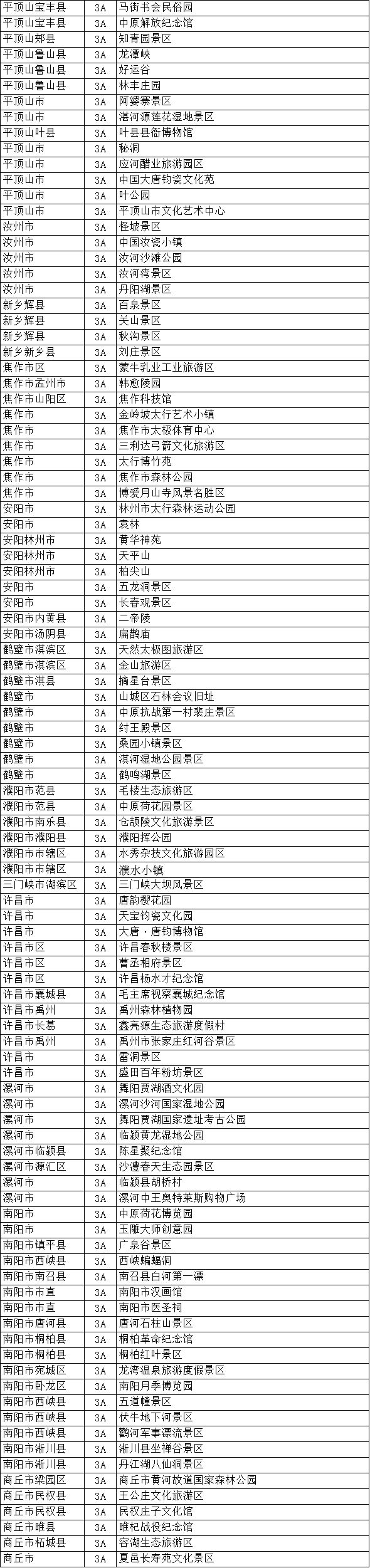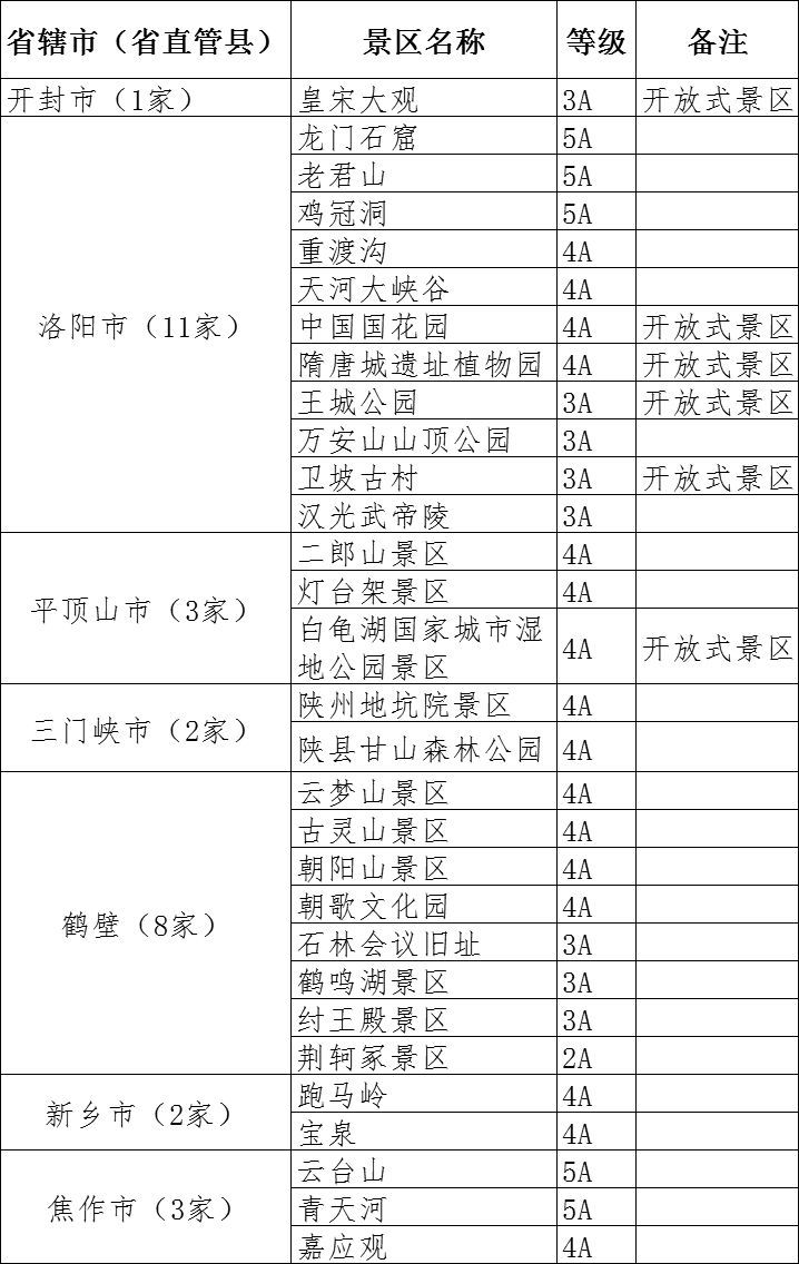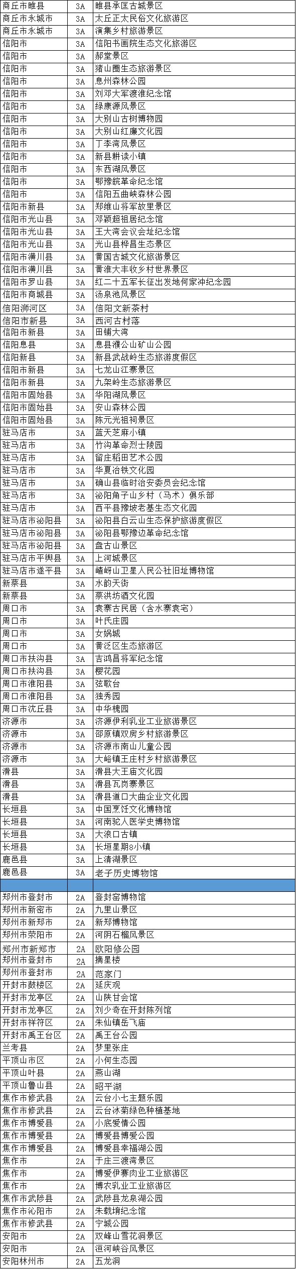 2、全省恢復(fù)開(kāi)放A級(jí)景區(qū)名單