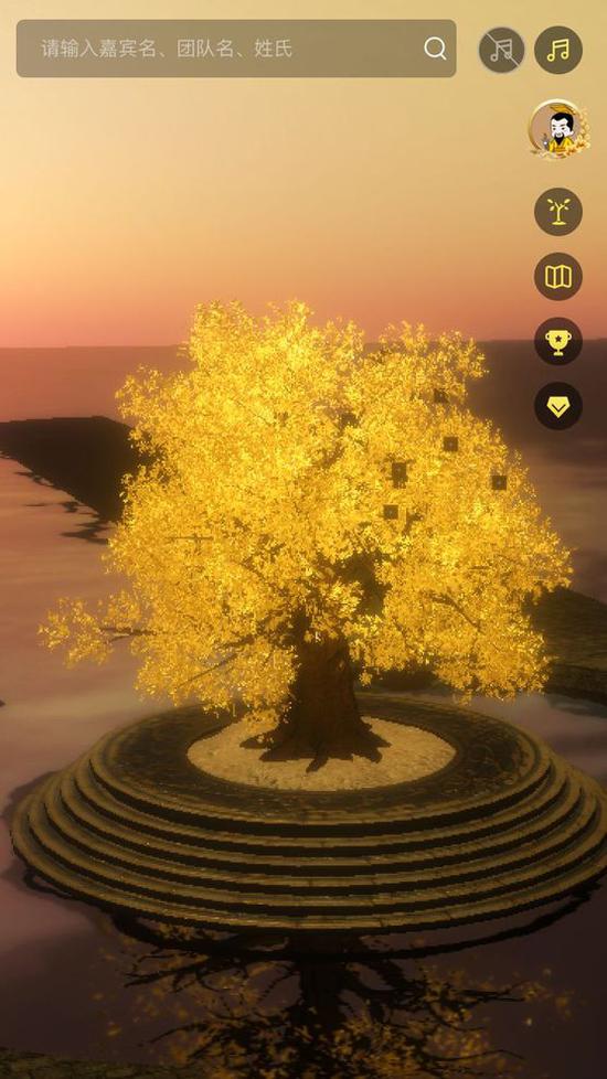 記者在搜索欄中輸入“張”姓氏,頁面即刻出現(xiàn)了金黃色的姓氏葉子,廣大網(wǎng)友可點贊姓氏團或?qū)懴缕砀UZ,當提交成功后,即為“黃金樹”添葉成功,祈福成功。