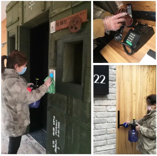 每日對酒店定時進行全面酒精消殺,一天三次更換電梯貼膜,所有區(qū)域進行無死角清潔,開窗通風,做到勤換、勤抹、勤消毒。