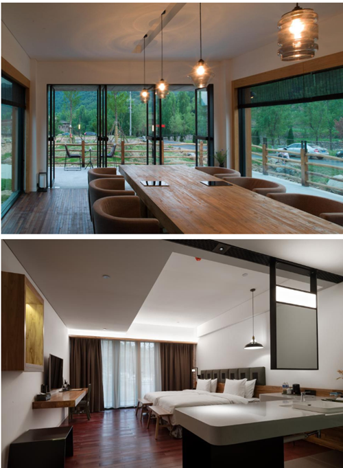 老兵工酒店共有100間客房,特色餐廳、茶室、會議培訓、洞穴酒吧等,滄桑的建筑外觀,講究的房間裝修,極簡黑白綠三色,軍旅風格,于細微處彰顯精致品味,讓軍工文化與靜謐舒適無縫融合,獨具特色,讓賓客在此酣然入夢。