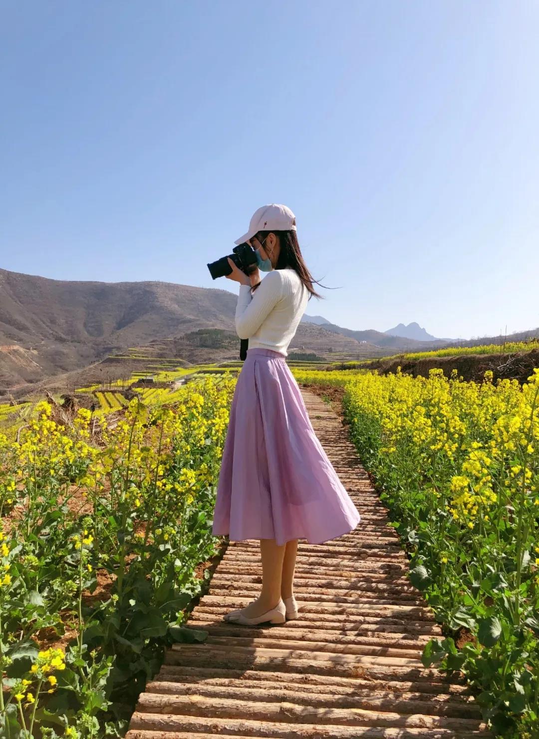 菜花黃,點(diǎn)亮了深沉的嶺南嶺北;鏡頭里,捕捉的時尚女郎,只站著在花中與嶺中。