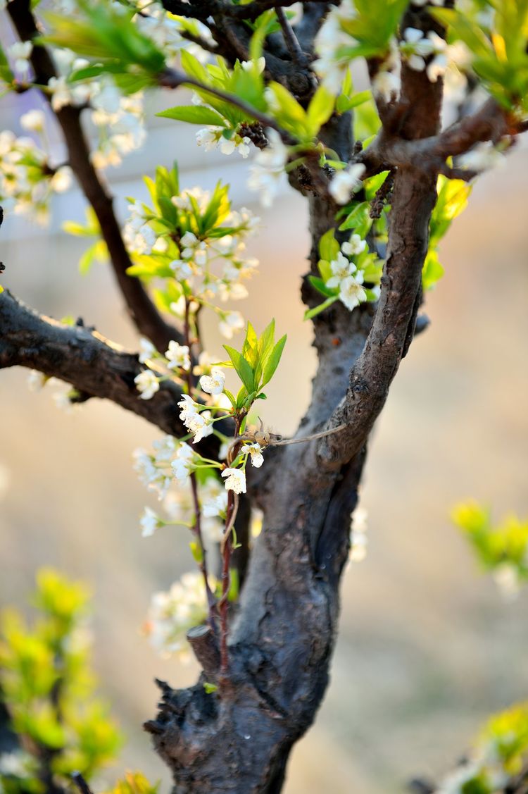 這么多的花, 要數(shù)桃花最為鮮艷多彩。有深紅的,像燃燒的火苗;有紅色的,像小姑娘粉嫩的臉龐;有白里透紅的,像精致臉龐上那精致的粉唇 ,花中間的紅色 那么清新;而我最喜歡的是白色的桃花,一串串的 挨挨擠擠開滿了整顆桃樹,每一支上都有幾串桃花,一小支上就有上百朵小花開滿枝頭,花朵像潔白牙齒一樣整齊的排列著,又像玉一樣那么潔白溫潤(rùn),白色的小花在嫩葉的點(diǎn)綴下 更顯其淡雅。