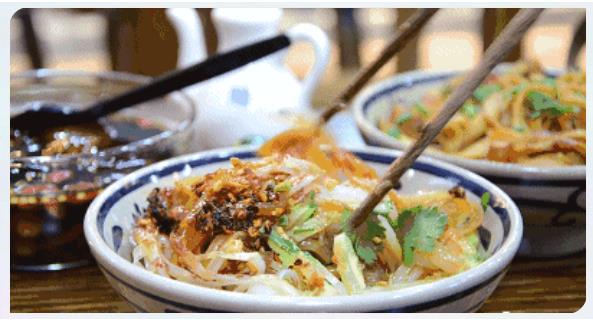 在小鎮(zhèn)的街頭走一走,再吃上一碗色白、光潤、皮薄、細(xì)軟、柔韌的秦鎮(zhèn)米皮,拌上特制的辣椒油、醋和鹽,加上芹菜丁和豆芽、黃瓜絲等小菜,一碗看來紅通通、吃來“筋、薄、細(xì)、軟”、涼爽可口的秦鎮(zhèn)米皮就能給你帶來一份滿足,這才叫爽。