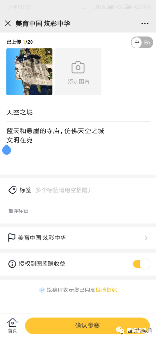第八步:填寫標(biāo)題并作30個字說明 最后備注“文明在宛”最后確認(rèn)參賽。