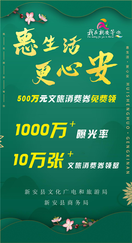 為鼓勵(lì)廣大市民走出家門,擁抱春暖花開,享受美好生活,2020年4月1日至4月4日期間,河南新安縣文化廣電和旅游局、新安縣商務(wù)局整合新安縣景區(qū)、星級(jí)賓館、特色餐飲、娛樂場(chǎng)所等面相全國發(fā)行“”惠生活 更心安—我在新安等你”500萬元文旅消費(fèi)券,整個(gè)活動(dòng)呈現(xiàn)三大亮點(diǎn):