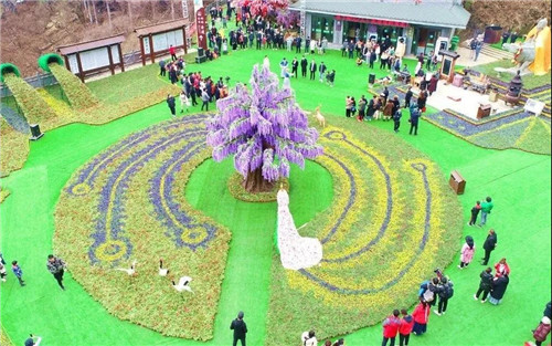 春風(fēng)漸暖、萬物新發(fā),老君山仙山花海節(jié)也在暖風(fēng)中炫彩綻放。為迎接游客的到來,景區(qū)特在中天門廣場打造了盛大的造型花海。
