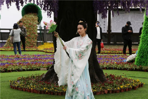 十二花神仙姿裊裊、步履娉婷。她們手持花枝,在花海之中淺步輕盈,為游客帶來浪漫唯美的視覺享受。