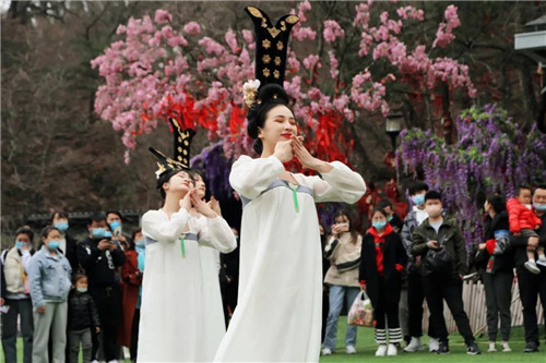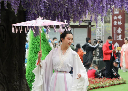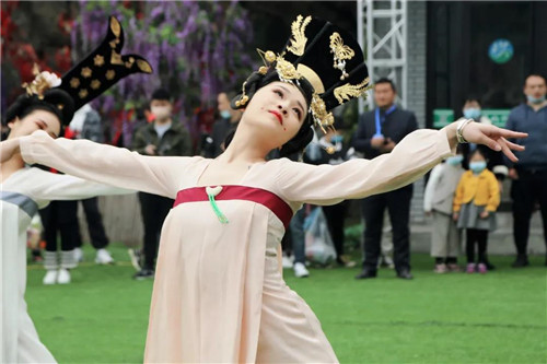 活動(dòng)現(xiàn)場還為游客朋友們準(zhǔn)備了精彩的節(jié)目演繹,一曲古風(fēng)伴佳人,她們婀娜多姿的身影,映照著花海,為仙山增添了一絲別樣的風(fēng)景。