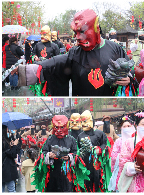 景區(qū)將清明特色演出迎送新酒、儺面舞、清明版快閃等融入到清明特色大巡游里,具有節(jié)慶獨特性,對游客極具吸引力和感染力。