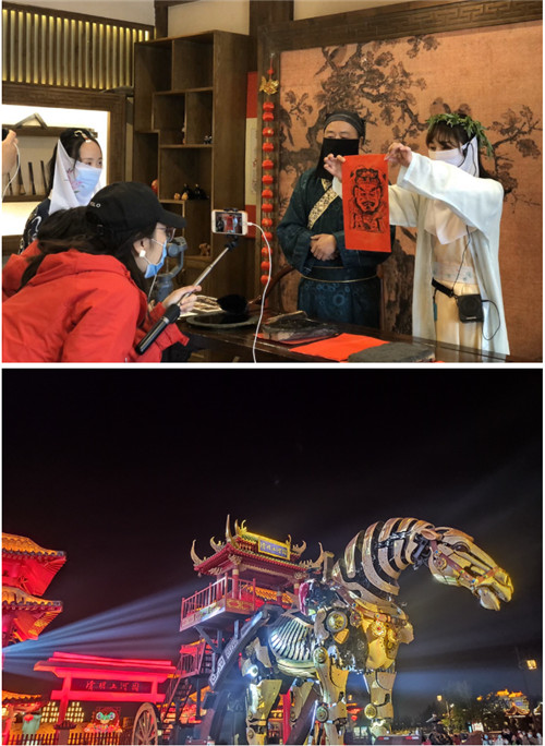 清明小長假期間,清明上河園官方抖音號進行了一段長達十二小時、六位主播接力的方式線上直播,內(nèi)容包括了中華巨馬、情景展示、孫羊正店、東京食坊、特色商戶、清園禮物、夜游清園等全系列園區(qū)特色產(chǎn)品,給手機屏幕前數(shù)十萬的粉絲一次特別之旅!