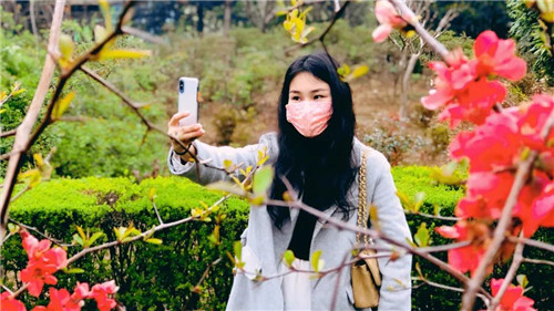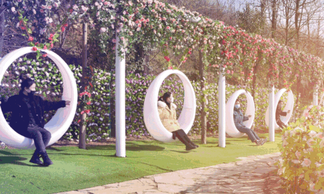 園區(qū)里,山花點(diǎn)綴其間,人們走過(guò)柳蔭,盡情玩耍,疏散心情。