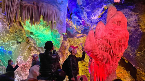 溶洞奇觀,引人入勝。游客拍照留念,感嘆大自然的點(diǎn)滴之功。