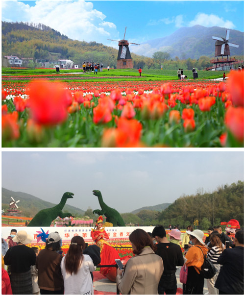 園區(qū)內(nèi)百萬郁金香競(jìng)相開放,吸引眾多游客共賞疫散花開的自然美好。賞花游玩的同時(shí),還有網(wǎng)紅不倒翁表演,財(cái)神巡游帶領(lǐng)大家游園賞春,感受春光恣意,花色浪漫。