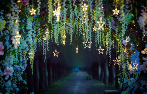 白天的花海艷麗動人、人流攢動。而夜晚的花海,人潮褪去,燭光亮起、星空璀璨、花香浮動,更令人心旌神搖。
