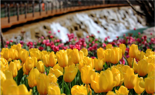 在景區(qū)中,隨處都能見到郁金香的身影,與最愛的人相“郁”在寶泉的花海里。