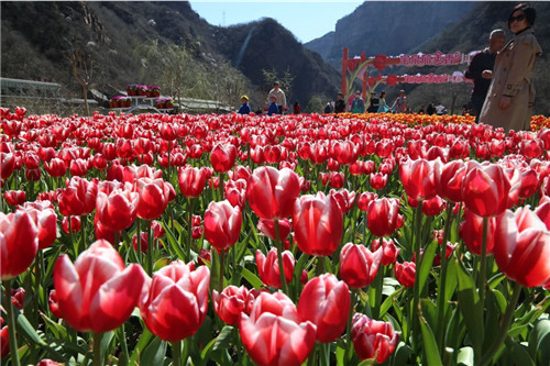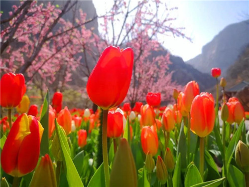 每年這個時候,正是寶泉郁金香爛漫之時,團(tuán)團(tuán)簇簇的郁金香連綿成片,印著情湖波光粼粼的湖水,簡直美到舍不得眨眼。