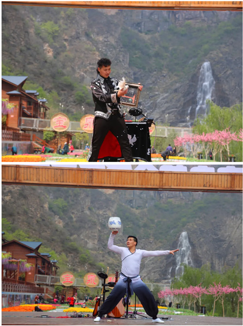 沐一場春風(fēng),醉一場花香。藍(lán)天、卷云、桃紅、柳綠、魔術(shù),樂隊,變臉,舞者,寶泉最美的時節(jié)莫過于此。