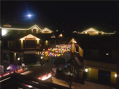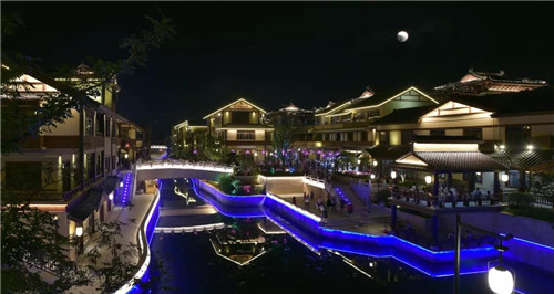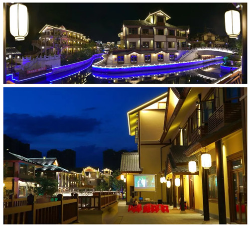 天剛?cè)胍,站在閣樓上,忽然間華燈齊放,整座小鎮(zhèn)色彩斑斕,驚艷之極,璀璨的燈帶,把秀美的樓宇、廊亭、拱橋、水系勾勒得輪廓畢現(xiàn),美輪美奐。
