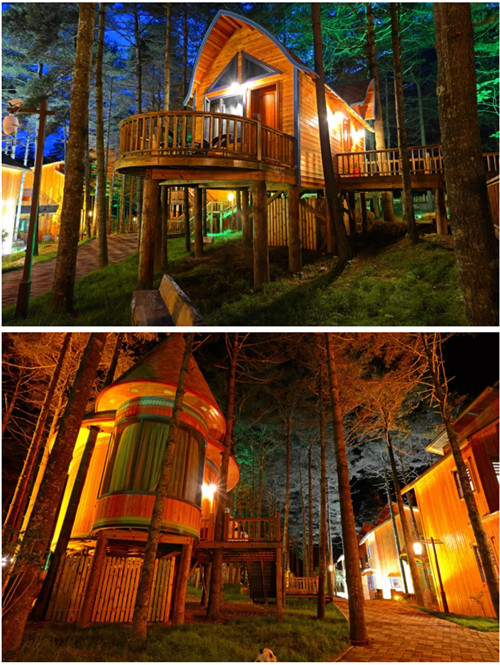 坐落在群山之中的小木屋,夜晚顯得更加迷人