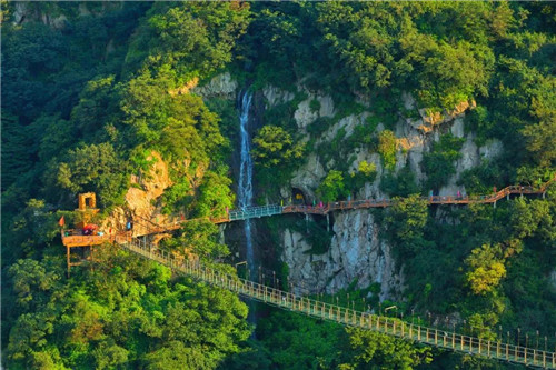路線更合理。七峰山叢林玻璃滑漂從游步道一路盤旋而下直至七彩湖水上樂園(距離山門步行15分鐘),讓不想乘坐觀光車和步行下山的游客有了多重選擇,同時(shí)也不會(huì)錯(cuò)失景區(qū)美景。