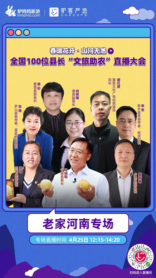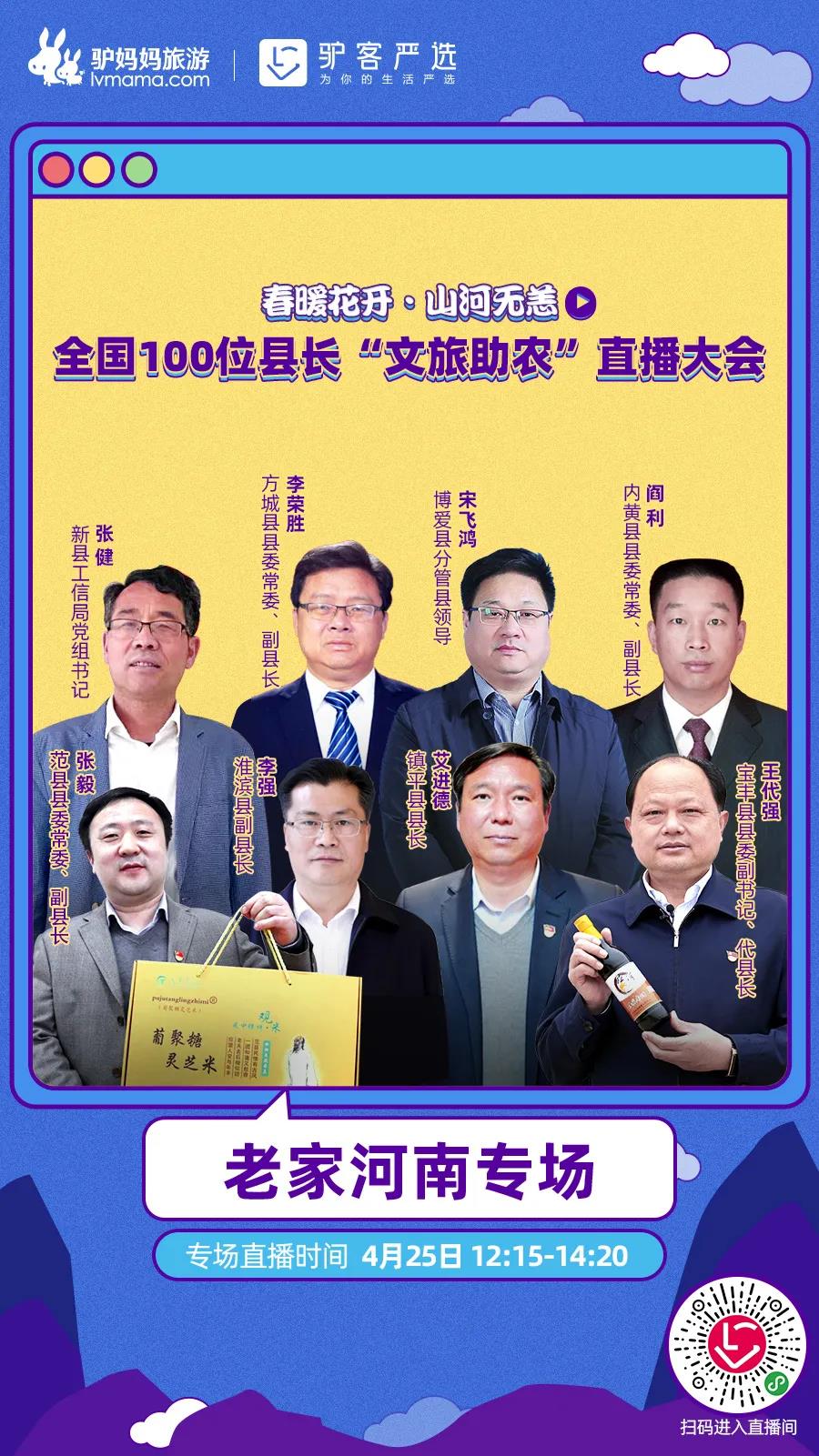 4月25日活動(dòng)當(dāng)天,全國(guó)百名縣長(zhǎng)“文旅助農(nóng)”直播大會(huì)之“老家河南”專場(chǎng)將邀請(qǐng)來(lái)自省內(nèi)24個(gè)市長(zhǎng)、縣長(zhǎng)走進(jìn)直播間,客串賣貨主播。長(zhǎng)垣市的綠豆涼皮、范縣的大米、寶豐縣的米醋、方城縣的燴面、寧陵縣的酥梨、滑縣的燒雞、盧氏縣的連翹茶、淮陽(yáng)的黃花菜、羅山縣的鮮花、博愛(ài)縣的竹松茸、清豐縣的赤松茸……都將在市長(zhǎng)、縣長(zhǎng)們的推介下,在直播間一一亮相。