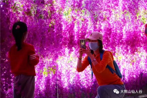 紫藤花開游人醉,霧里看花花非花。每次說(shuō)起紫藤花,就想到李白筆下的“紫藤掛云木,花蔓宜陽(yáng)春。密葉隱歌鳥,香風(fēng)留美人。“景區(qū)新增添的一條百米夢(mèng)幻紫藤廊,花垂如瀑、如夢(mèng)如幻,浪漫穿行其間,美到令人窒息。