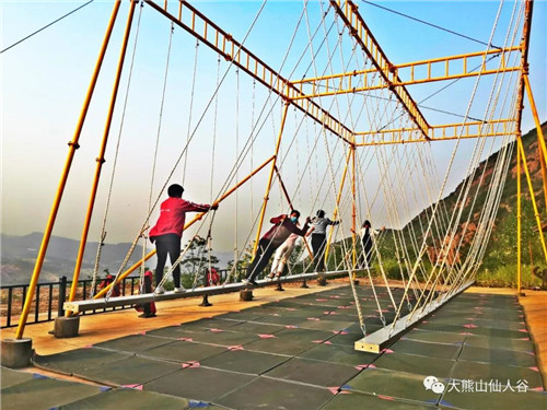 在動(dòng)感音樂的伴奏下三五成群走上水上吊橋,晃悠悠、蕩悠悠,雖然有人不時(shí)從橋上掉到水里,但還是喜笑顏開其樂融融,圖的就是個(gè)刺激,圖的就是個(gè)美好的心情。