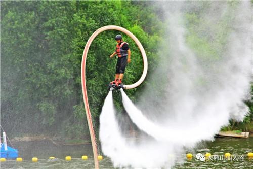 這個(gè)五一,水上飛人表演正式回歸!以高山為背景,以湖面為舞臺(tái),在水柱的支撐下,白浪飛騰,極限運(yùn)動(dòng)員為您展示前后空翻、空中回旋、蛟龍出水、360度轉(zhuǎn)體一系列高難度特技動(dòng)作,無(wú)論是翻騰跳躍還是停駐空中,花樣繁多的表演讓人驚心動(dòng)魄,極具視覺沖擊力的展示,為游客帶來(lái)了一場(chǎng)前所未有的“視覺盛宴”。讓您近距離感受“水上飛人”的魅力和精彩,也讓您的旅游“不虛此行”。