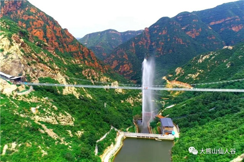 飛雲(yún)天橋——是中原地區(qū)跨度最長(zhǎng)的全透明高空5D玻璃天橋,橋長(zhǎng)266米,垂直落差106米,一橋飛架兩山,凌空漫步于透明懸空的玻璃天橋上,驚險(xiǎn)刺激;天橋之下,蒼山如黛,潭水幽深,現(xiàn)代建筑藝術(shù)與自然山水景觀相存相依,完美呈現(xiàn)。