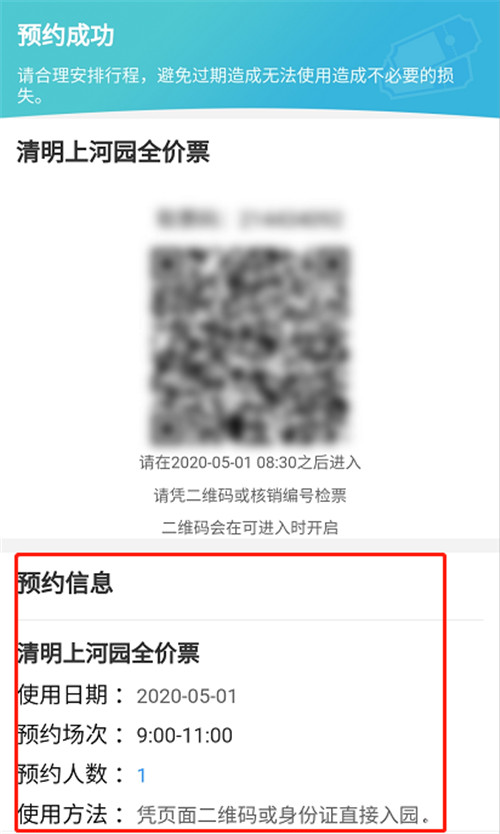 當(dāng)您完成支付后,系統(tǒng)會(huì)發(fā)給您入園二維碼,此二維碼在非預(yù)約時(shí)間段內(nèi)暫無(wú)法使用,在預(yù)約時(shí)間段內(nèi),二維碼會(huì)自動(dòng)顯示,無(wú)需換票,刷碼直接入園。