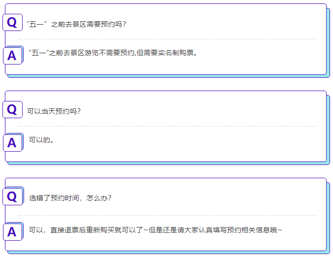 “五一”假期期間,景區(qū)實(shí)行分時(shí)段實(shí)名預(yù)約游覽制度,所有游客需網(wǎng)上預(yù)訂門票: