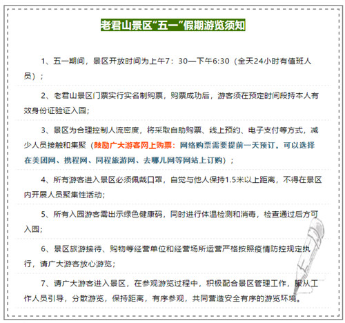 長(zhǎng)達(dá)五天的五一小長(zhǎng)假就要來(lái)了,為了保障您安全出行,有序游覽,老君山景區(qū)向廣大游客發(fā)布溫馨提示——
