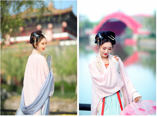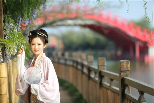 身穿低調卻不失精致的宋裝,漫步在春季的清明上河園,看桃紅柳綠、草長鶯飛。