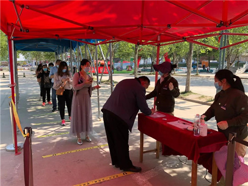 每位來(lái)欒游客進(jìn)入景區(qū)游覽之前,在測(cè)溫通道內(nèi)景區(qū)工作人員積極組織游客進(jìn)行體溫檢測(cè),并及時(shí)登記身份信息和查驗(yàn)相關(guān)健康綠碼。