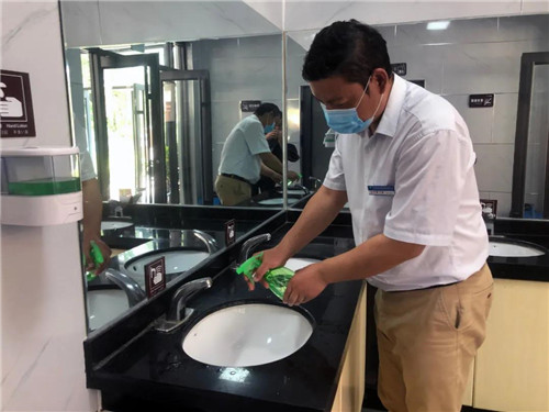 景區(qū)工作人員按照標準定時對各處公共場所進行消殺工作。