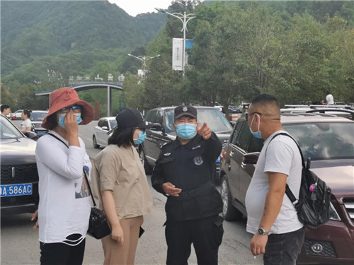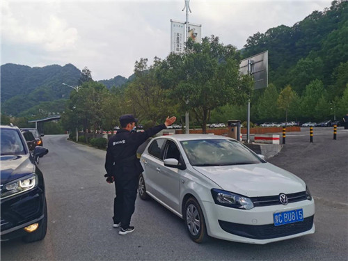 堅(jiān)守一線的景區(qū)工作人員,對(duì)進(jìn)入景區(qū)的每一輛車輛檢查。