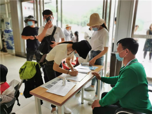 嚴(yán)格執(zhí)行防疫相關(guān)要求,對(duì)游客進(jìn)行體溫測量并登記。