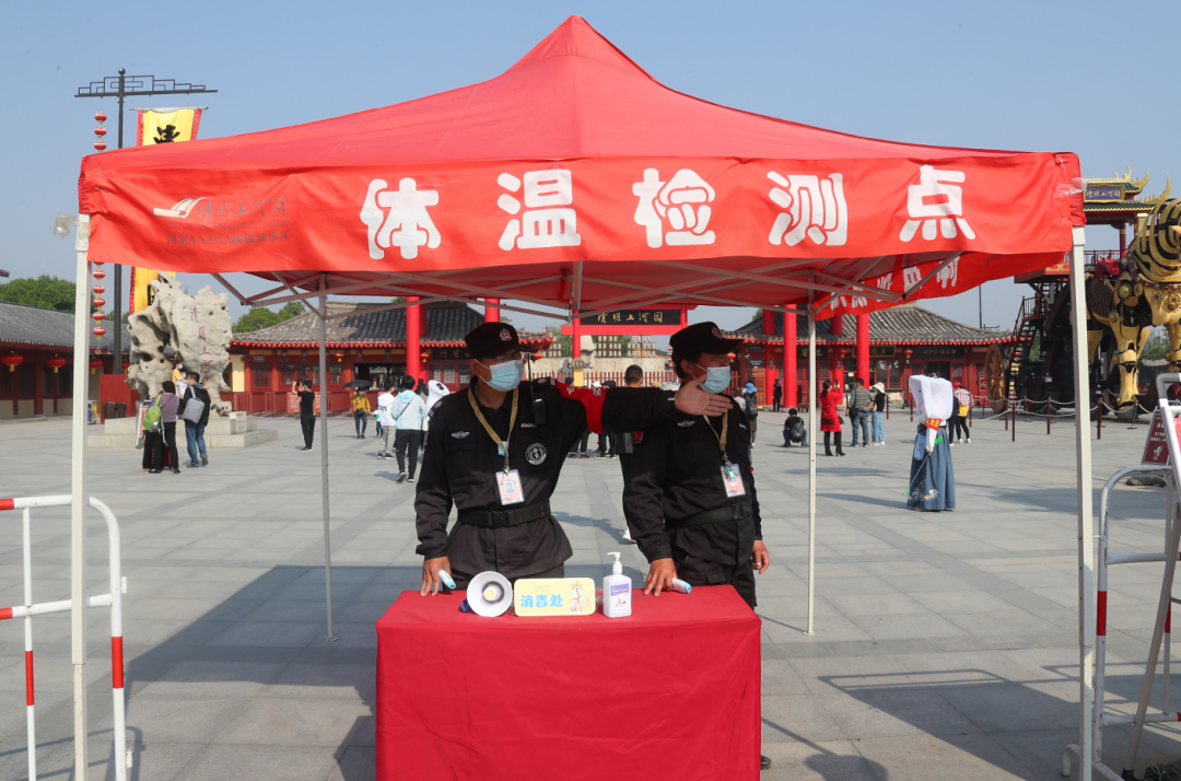 景區(qū)全員上崗引導游客間隔入園,增開兩個門區(qū)和一個備開門區(qū),在景區(qū)出入口處,重要參觀點等易聚集區(qū)域設置專人,加強疏導,避免擁堵,以最大程度上確保游客能夠有序進入園區(qū)。