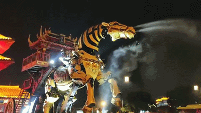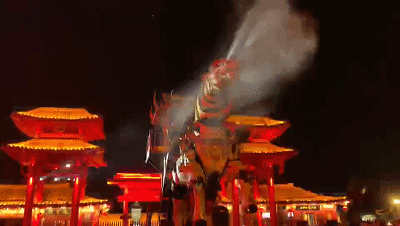 中華巨馬擺脫了傳統(tǒng)機(jī)械馬簡(jiǎn)單機(jī)械動(dòng)作仿真表演的模式,可與觀眾進(jìn)行張嘴吐舌、眨眼、擺耳、噴霧、鳴叫等互動(dòng)交流,擁有嘶鳴、噴煙、噴火、噴水霧等特效,猶如活生生的巨大神獸一般,與游客形成互動(dòng)。自2019年9月亮相清明上河園后,每天都引得眾多游客駐足觀看。
