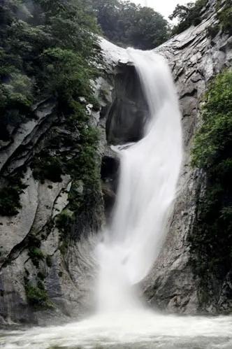 堯山植被豐富,雨水充沛。堯山的水美,莫過于眾多瀑布。九曲瀑布高達數(shù)十米的石壁,受水流沖刷、自然浸蝕,形成眾多的石窩、石槽、石坎,瀑布下瀉時九曲三折,盤旋環(huán)繞,如黑龍擺尾,欲躍九霄。