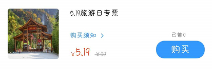 對河南省所有游客執(zhí)行5.19元特價門票銷售活動。