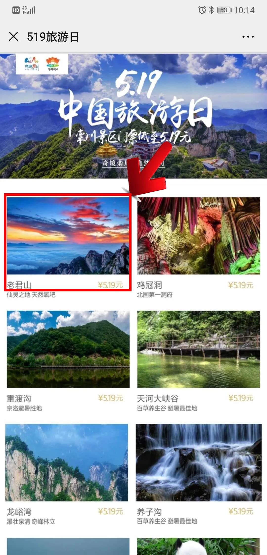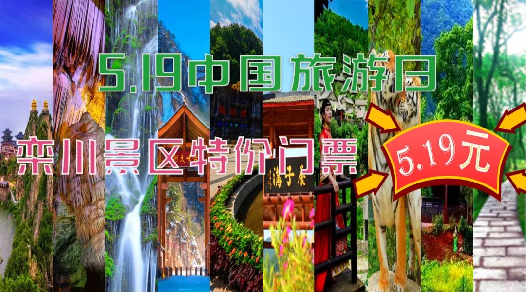 一、活動(dòng)簡介:為慶祝我國第十個(gè)中國旅游日的到來,欒川縣8家4A級(jí)以上景區(qū)及竹海野生動(dòng)物園,特推出5.19中國旅游日特價(jià)票,每家景區(qū)單張門票僅售5.19元!