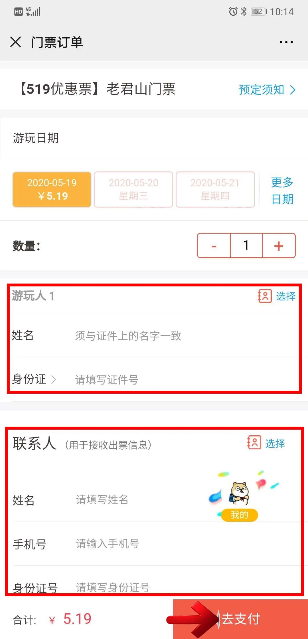 第五步:填寫個(gè)人信息并支付