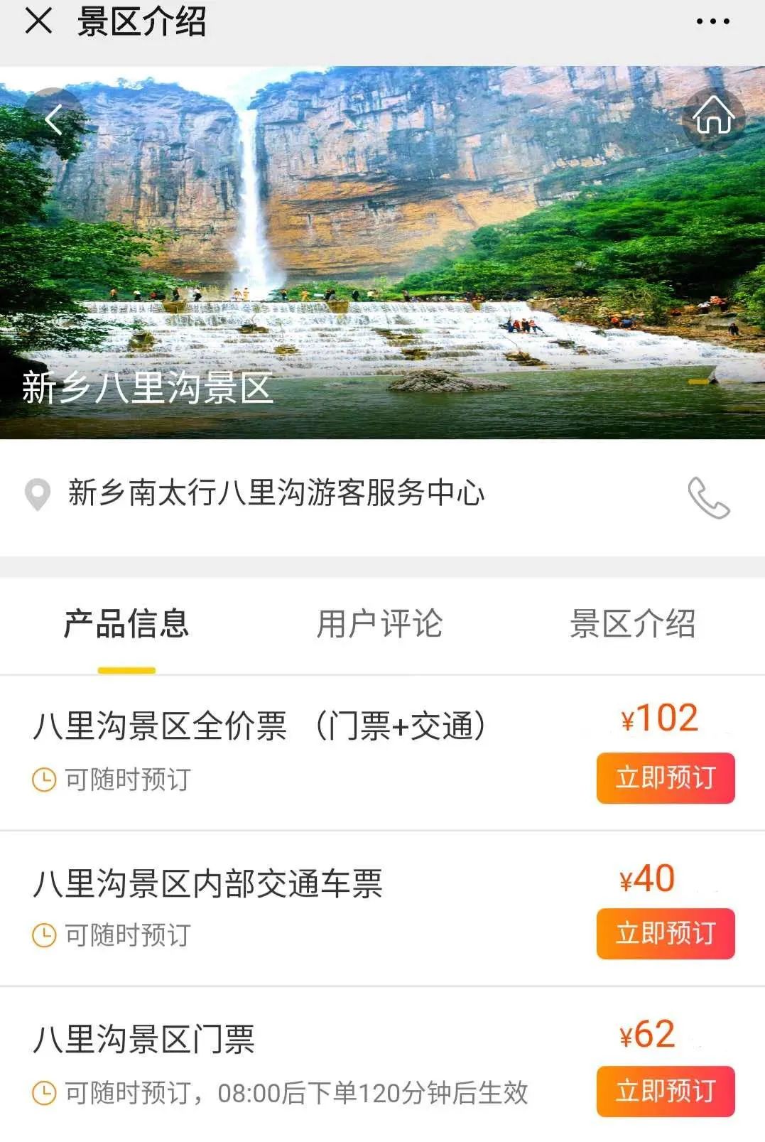 2、所有游客需要提前預(yù)約,八里溝景區(qū)(八里溝·天界山·九蓮山)、萬仙山景區(qū)預(yù)訂交通車票即為預(yù)約成功,其他景區(qū)預(yù)訂免門票即為預(yù)約成功;